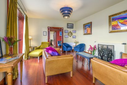 The drawing room is a wonderful place to gather in front of the cosy open fire, while French doors open out onto the deck so you can admire the mesmerising views over Kerrera to Mull. For a less formal affair, the TV room is the perfect place to snuggle up, relax and watch your favourite movie after a day of exploring.