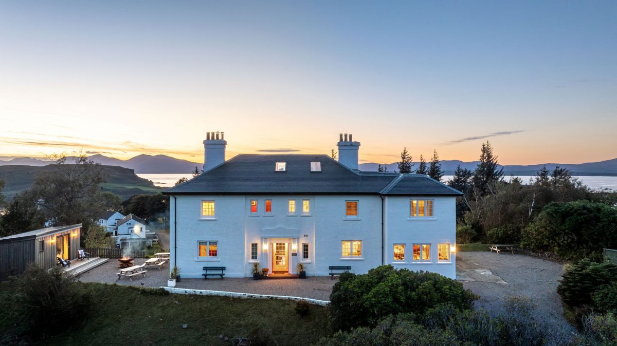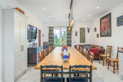 Meanwhile, the kitchen and dining room is the focal point of the house for socialising and entertaining. The kitchen is divided into two areas, one for the designated chefs to cook delicious feasts, and another for preparing breakfast, coffee and pre-dinner cocktails. Across both, you will have access to a Range cooker, three full-size fridges and a full-size freezer, two dishwashers, three microwaves, a hot water tap, Nespresso coffee machines and Dualit toasters. When you’re ready to wine and dine, there is a bespoke dining table, a TV and views overlooking Oban Bay. The utility room houses a washing machine, tumble dryer and drying racks.
