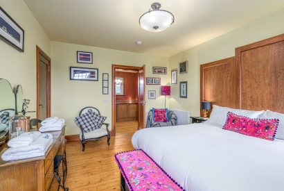 The ground floor also has the first of four bedrooms. This bright and cosy room is complete with a zip-and-link super-king-size bed and a dedicated shower room across the hall.