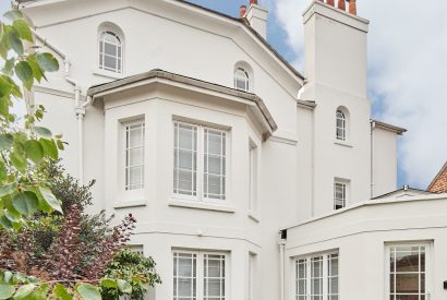 This smart, Grade II-listed home, with its white-washed facade and large bay windows, is an excellent place for a family or friends to spend time by the coast. The same impressive period style continues inside with ornamental period fireplaces and chandeliers, while fixtures and furnishings are modern yet tastefully timeless. From the kitchen and most of the bedrooms you can also admire views towards the River Hamble estuary. The waterfront with its quay and marinas is just a few minutes’ walk away, as are restaurants, pubs and bars.