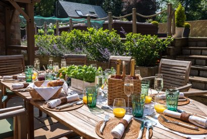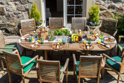 Meanwhile, the dining table seats everyone comfortably and the stylish kitchen features a breakfast bar for informal dining. The kitchen is equipped with everything to make self-catering easy, including an electric oven, an induction hob, a fridge, a freezer, a microwave, kettle, coffee machine and a dishwasher.