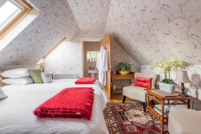 On the third floor, there are two loft rooms, one with a double bed and the other with two beds that can be joined together on request to create a super-king-size bed. Each has an en-suite shower room.
