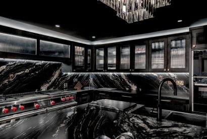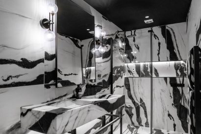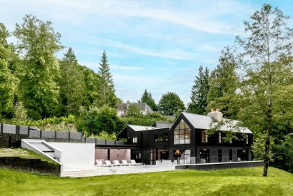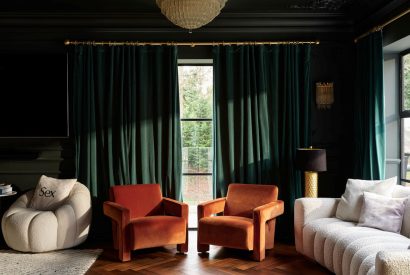 Halo House is a statement retreat where striking interiors meet thoughtful design. The ground floor centres around a spacious open-plan kitchenand dining area full of character, along with two inviting living rooms. One designed for cosy evenings by the fireplace watching your favourite series and the other perfect for chit chat and family games. Rich textures, bold colours and eclectic artworks set an elegant yet playful tone, while plush seating invites guests to relax together.
