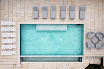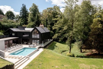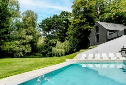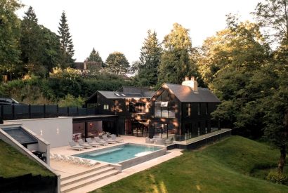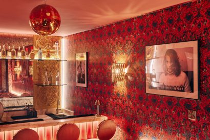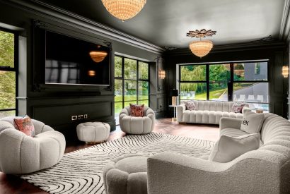 Tucked amongst the bedrooms on the first floor is a sumptuous cinema room designed for total escapism, complete with deep sofas, surround sound and blackout blinds for the perfect movie experience. Nearby, concealed behind a bookshelf, an ambient cocktail bar adds a touch of glamour, transforming ordinary evenings into something special. This hidden corner of the house is perfect for pre-dinner drinks or winding down after a day exploring the Cotswolds.