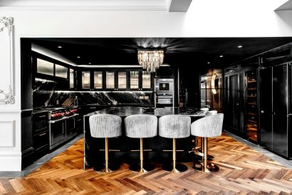 The dining table comfortably hosts large groups, and the kitchen is beautifully equipped with high-end appliances, generous worktops and a sociable breakfast bar - ideal for everything from slow mornings to celebratory dinners.