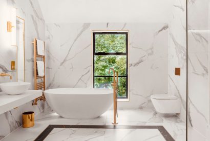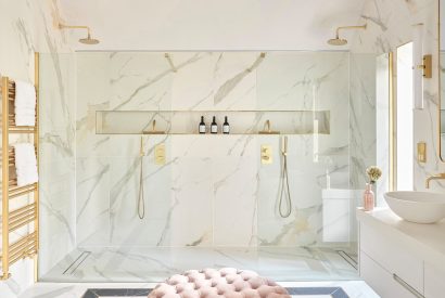 The first floor is home to the property’s luxurious bedrooms, each with its own personality and attention to detail. The master suite is an elegant, light-filled sanctuary with a freestanding bathtub, walk-in dressing area, double rainfall shower and his-and-hers sinks. Alongside it are two super-king bedrooms with stylish en-suite bathrooms, a beautifully finished king-size room with its own en-suite, and two further king-size bedrooms that share a well-appointed bathroom. Each room combines unique design with exceptional comfort, from bold colour schemes to calming palettes, high-quality linens and carefully chosen furnishings.