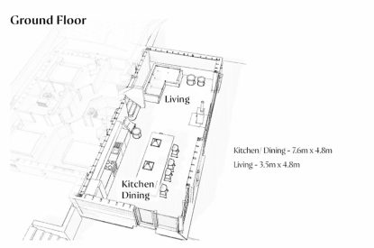 The kitchen’s colour scheme is inspired by the iron oxide tones of local Welsh stone, while high-spec Scandinavian lighting features throughout, illuminating the elegant architectural details. The open-plan layout creates a natural flow between the fully equipped kitchen, sociable dining area and inviting living space, where a wood-burning stove, L-shaped sofa and a striking Ukrainian woollen wall hanging form a warm, communal hub. Please note that the first basket of logs is included; more will be available upon request at an additional charge.
