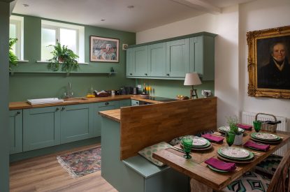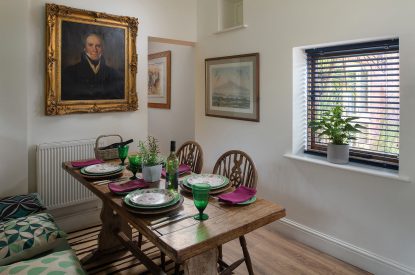 The stylish kitchen is complete with everything you should need to self-cater with ease, including an electric hob, an electric oven, and a fridge/freezer. Meanwhile, the eight-seater dining table is the perfect place to enjoy delicious meals and plan your next adventure.