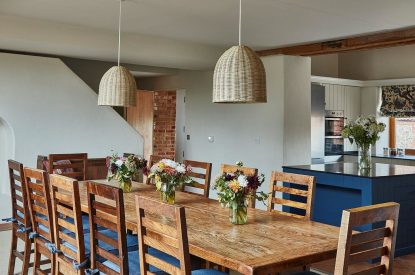Craving a spot of respite? With its idyllic country coast location and flourishing surrounding meadows, High Barn is here to satisfy your need for a disconnect. Illuminated by a palette of soul-soothing hues, this period barn sees perfectly retained original features met with a medley of contemporary touches. An altogether enchanting home, get set to luxuriate as you acquaint yourself with the endless array of features and finery. From the carefully curated selection of sumptuous soft furnishings to the wow-worthy ancient flint facade and not forgetting the bubbling private hot tub, this place leaves nothing to want for.