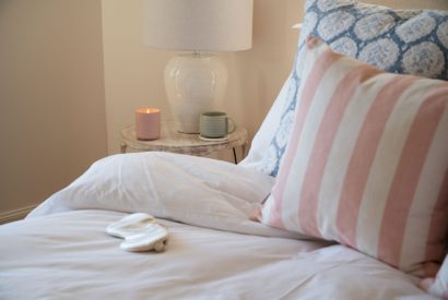 There are two delightful bedrooms that have been decorated with calming colour tones, high-quality soft furnishings and Egyptian cotton sheets. There is one king-size bedroom with an en-suite bathroom and another with zip and link twin beds and a hallway bathroom next door.