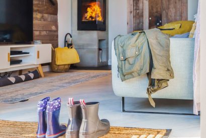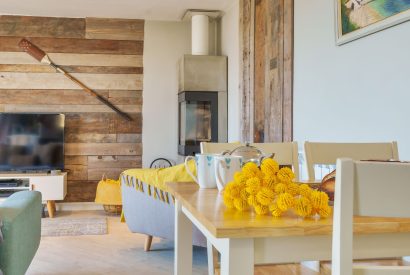 Enter through charming harbour-stone walls into a warm open-plan space, where plush sofas surround a log-burning stove, large windows frame the harbour and the sound of the sea becomes rhythm.