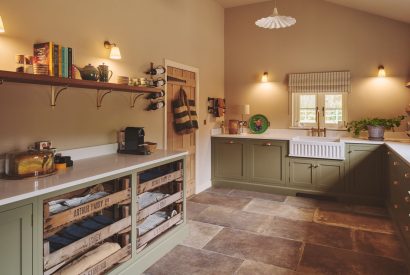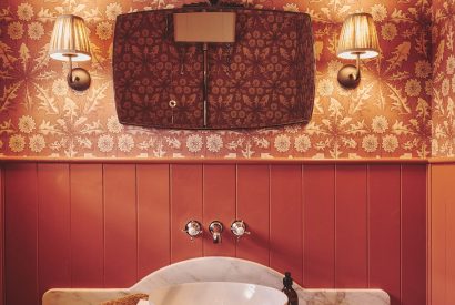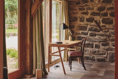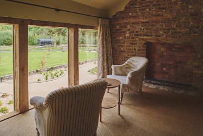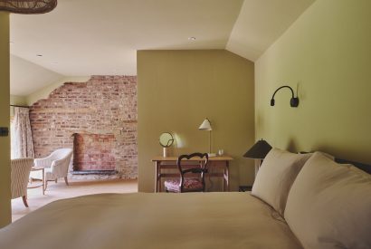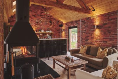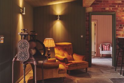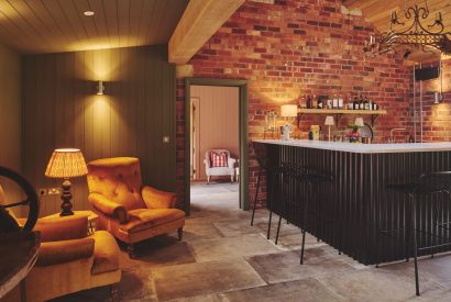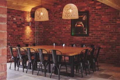 Once home to cart horses, pigs and sheep, Piggeries has been thoughtfully transformed into a rustic yet stylish gathering space. Accessed via a covered walkway from Mill House, this brick-lined building with its original stone floor retains a timeless charm. A wood-burning stove forms the heart of a generous dining area and bar, ideal for feasts or evening celebrations.