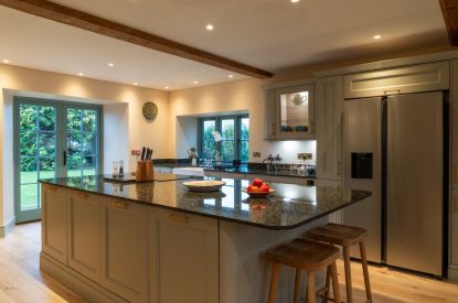 Upstairs and across the house, nine en-suite bedrooms feature super-king size beds (can be twin on request) along with a standard twin room. Each room is individually styled, with luxurious beds, fine linens and calm, neutral tones. Flexible layouts make the property ideal for families, friends or mixed groups, while thoughtful details ensure comfort at every turn.