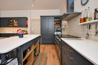 There’s also a library and TV room, with another open fireplace, sofas and armchairs, as well as a Smart TV/DVD player. In the bookcases, you can take your pick from a large selection of books, from classics to cookery books, something to help keep everyone entertained.