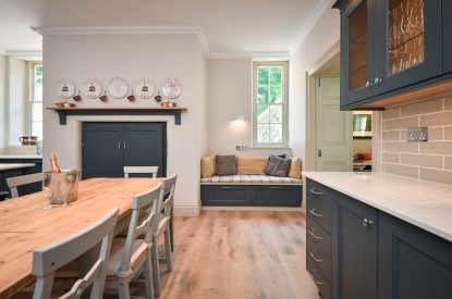 There’s also plenty of space to hang coats at the front and back doors, as well as a boot room and utility area with underfloor heating (same as in the kitchen) that includes a shower room and a WC. Ideal for those coming in from time in the countryside or on the beach.