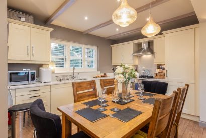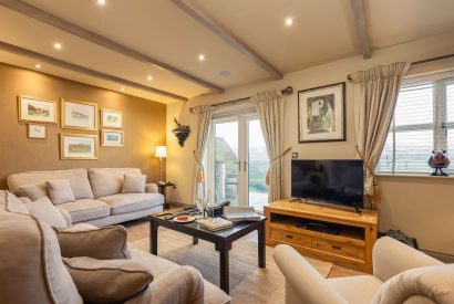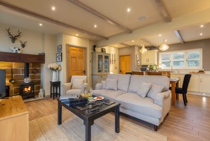 At the heart of the home is the open-plan lounge/kitchen/dining room which is a fantastic place to socialise. Relax on the plush sofas beneath one of the throws as you admire views through the French doors to the
