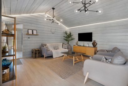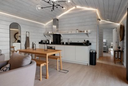 Step through the front door into a bright, welcoming hallway that leads into the main living area - a calm, contemporary space designed for comfort. A soft, neutral colour scheme, warm lighting and carefully curated furnishings set the tone for a relaxed stay. The open-plan layout flows seamlessly between lounge, dining and kitchen areas, creating a sociable atmosphere.
