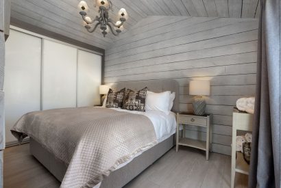 Two elegant super-king bedrooms continue the neutral, modern theme with soft linens and a clean, calming design. The bathroom features sleek contemporary fittings, a walk-in shower and a serene, spa-like feel.