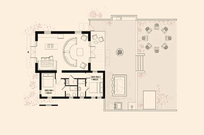 All bedrooms in each property are configured with either a king-size bed or twin beds as standard. Any additional beds indicated on the floor plans (shown as dotted outlines) are considered extra beds and will incur the applicable extra bed fee, regardless of the overall occupancy of the property.
