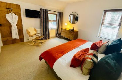 Stag Haven blends cosy lodge charm with refined modern comfort, creating a retreat that feels both welcoming and quietly luxurious. Soft neutral palettes, warm timber textures and thoughtful furnishings set a calming atmosphere, while the open-plan layout encourages relaxation and togetherness. Whether you’re unwinding by the fire after a day outdoors, enjoying slow breakfasts before heading into the forest or pausing to read as the trees sway outside, you’ll never be far from nature or comfort.