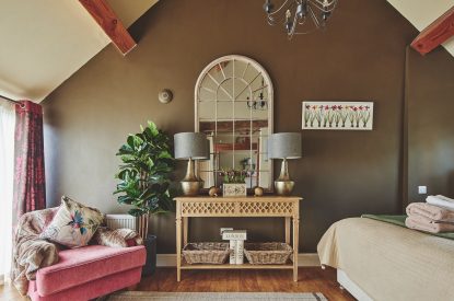 The Couple's Retreat is a modern barn conversion with everything you need for your escape to the country. With modern styling and quality furnishings throughout and features a spacious king size bedroom with wet room, an open plan living area with flame effect fire, original truss fully fitted kitchen leading to the private pretty garden.