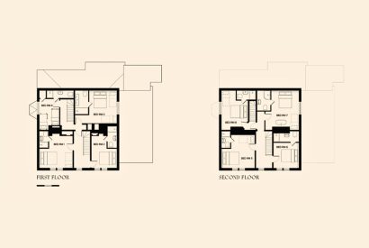 All bedrooms in each property are configured with either a king-size bed or twin beds as standard. Any additional beds indicated on the floor plans (shown as dotted outlines) are considered extra beds and will incur the applicable extra bed fee, regardless of the overall occupancy of the property.