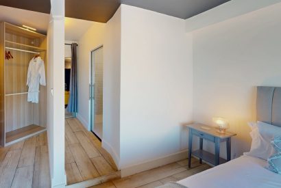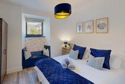 Four elegant bedrooms feature king-size beds, while an additional games/playroom includes a bespoke bunk bed with a slide that can sleep two children on single beds. Several bedrooms enjoy direct sea views, and two offer direct access to the house's elevated seafront exterior. Others are tucked away at the rear, offering cosy retreats with soft linens and calming coastal tones.