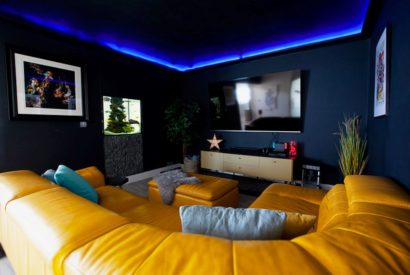 Additional highlights include a hot tub, Big Green Egg BBQ, fire pit facing the sea, a cinema den complete with games console and popcorn machine, and an EV car charger.