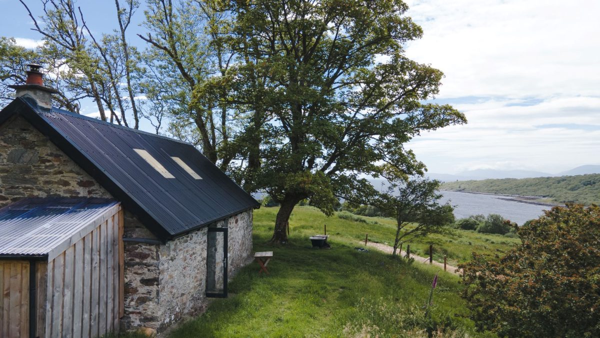 A secluded off-grid Highland bothy for two, blending traditional croft simplicity with mindful modern comfort, set amidst rugged west-coast landscapes and wild shores.