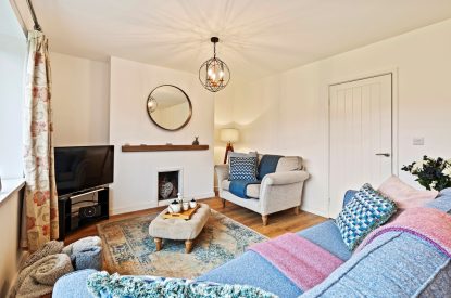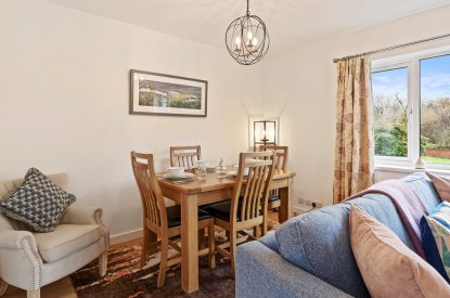 Step through the sage green door into the hallway leading you to the lounge and kitchen area where cosy country style meets contemporary charm. The lounge is complete with two relaxing and comfortable sofas and a Smart TV, while the four-seater dining table is the perfect place to gather for evening meals or to plan your next adventure.