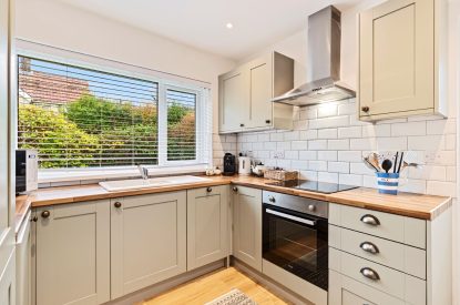 The well-equipped kitchen has everything you will need to self-cater including an oven and hob, a microwave, a kettle, a toaster, a dishwasher and a fridge/freezer.