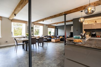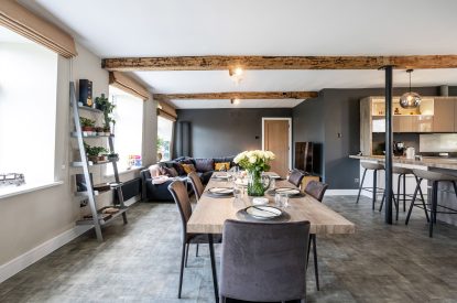 Set within a converted historic mill, Upper Riverside Mill blends character with contemporary style. Flooded with natural light and finished to a high standard, this two-bedroom apartment features river views from the many windows and balcony, a beautifully appointed designer kitchen and generous social spaces. It’s an ideal base for couples, friends or families looking to combine tranquillity with easy access to Kendal and the Lake District.